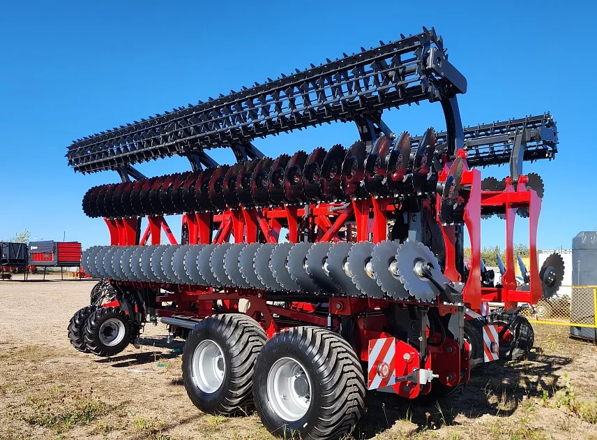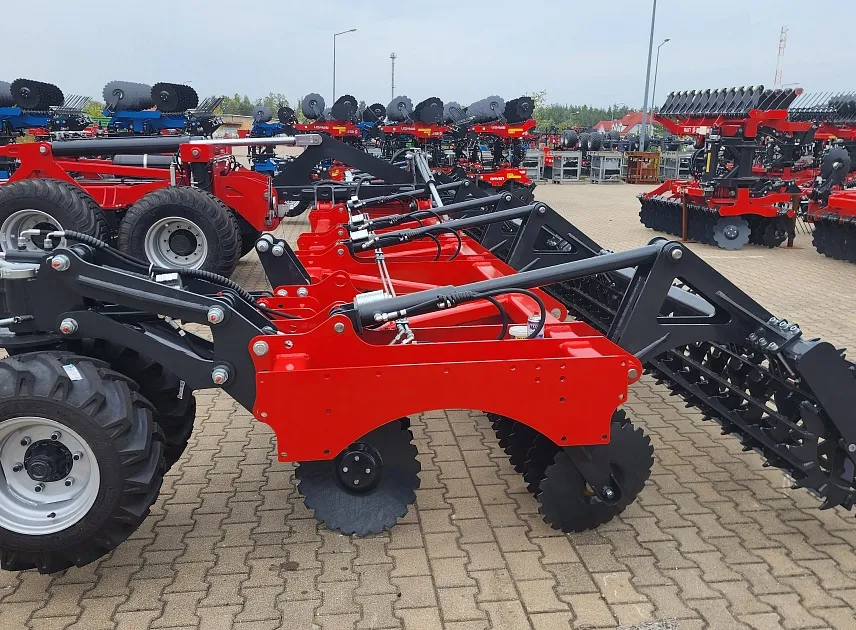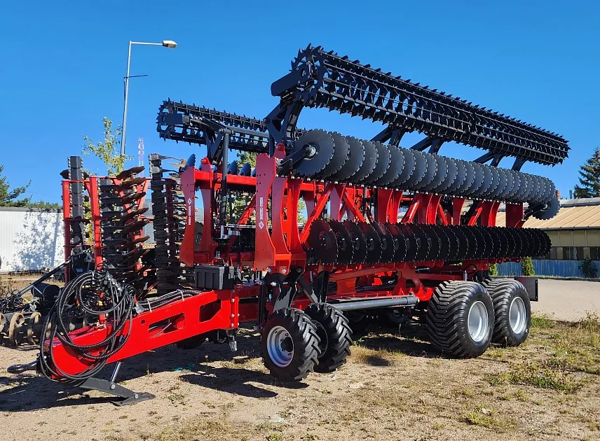 Дискатор Metal-Fach U710 12,5 метров - это тяжелая двухрядная дисковая борона, предназначенная для основной и предпосевной обработки почвы на глубину до 15 см, эффективного рыхления, уничтожения сорняков, измельчения пожнивных остатков и подготовки земли к посеву. Ключевая особенность — высокая производительность благодаря широкой рабочей ширине захвата, индивидуальным стойкам для каждого диска и увеличенному расстоянию между рядами обеспечивает лучшее перемешивание почвы с растительностью, снижение сопротивления и предотвращение забивания. |