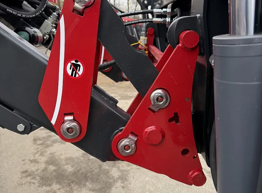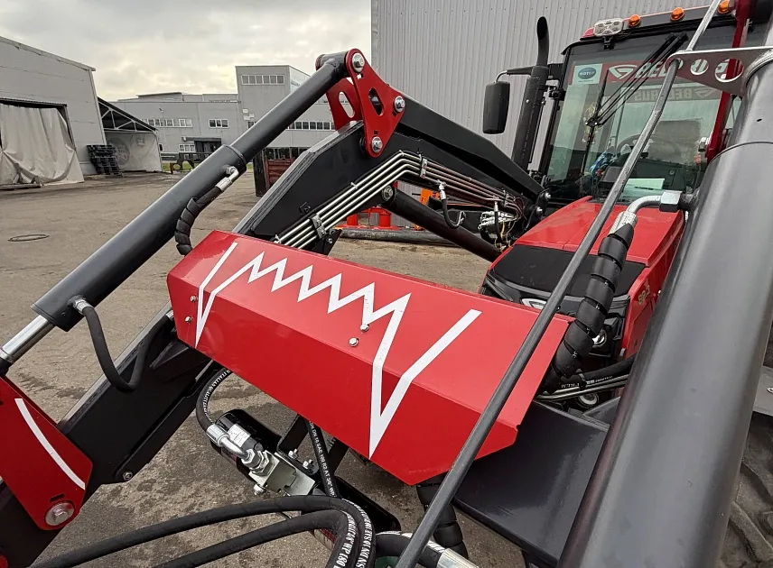 Погрузчик оснащен системой быстросъема стрелы и рабочих органов. Рычаги фиксации и гидравлические муфты расположены с одной стороны. Это позволяет оператору подсоединить или отсоединить навесное оборудование за считанные секунды. Формат крепления EURO (Еврорамка), что открывает доступ к огромному парку навесного оборудования.
