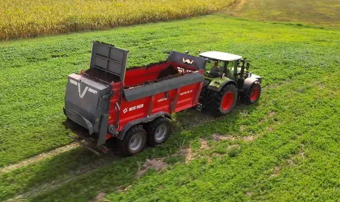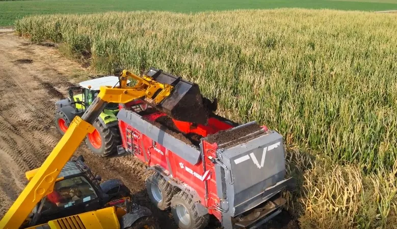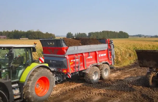 Легкая и быстрая загрузка навозоразбрасывателя. Удобство оператора и экономия времени.
