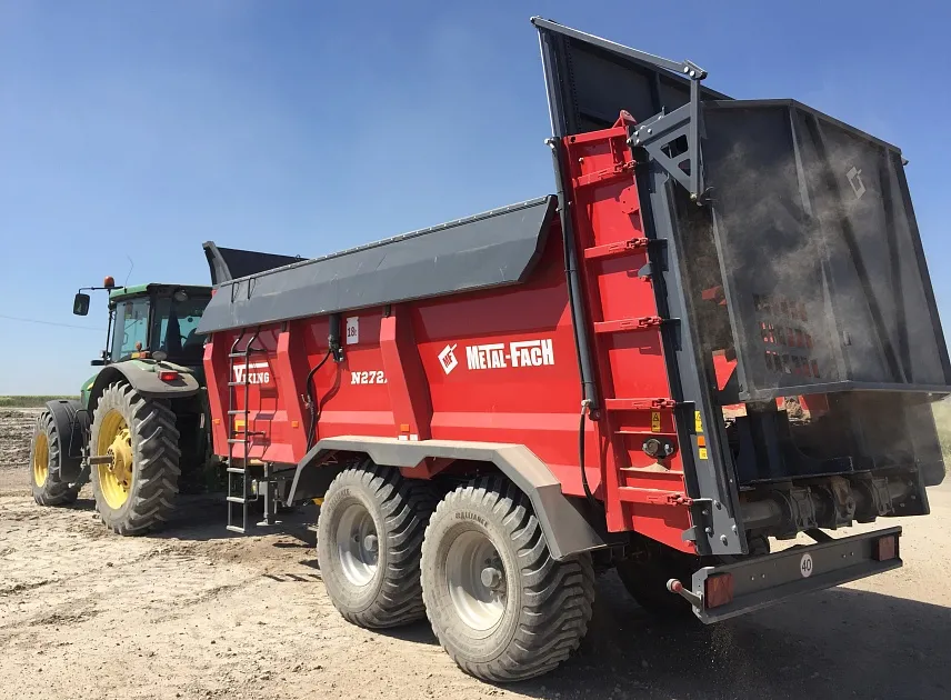 Конструкция навозоразбрасывателя Metal-Fach N272 предусматривает возможность оперативного демонтажа блока разбрасывающих шнеков, что повышает функциональность и универсальность агрегата.