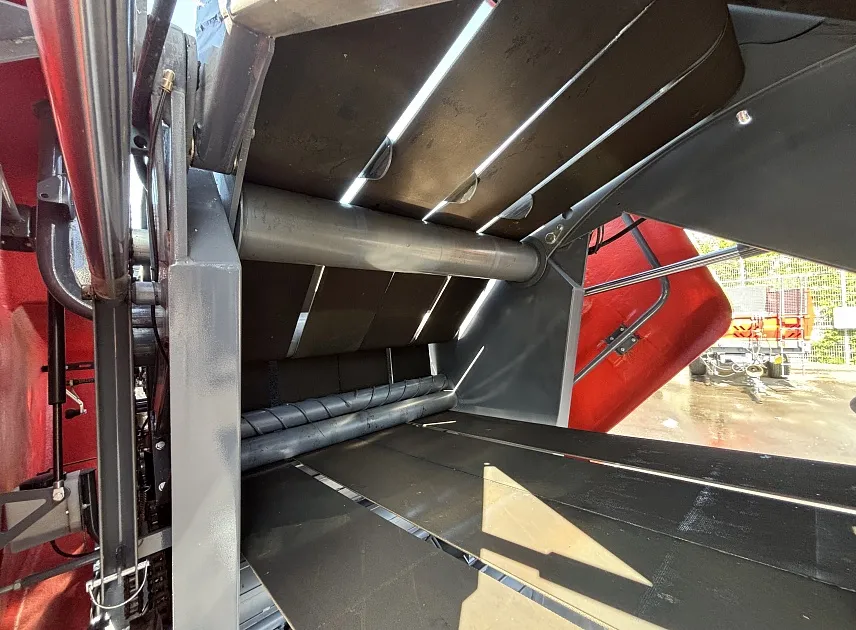 Главным преимуществом этой модели является изменяемая ременная камера. Это позволяет адаптировать размер тюка под конкретные нужды: от компактных рулонов для удобной транспортировки и хранения до крупных полевых работ и экономии упаковочных материалов. Кроме того, технология ременного прессования даёт возможность работать с материалом любой влажности — от сухой соломы до влажного сенажа. Гидравлическая система регулирует усилия, обеспечивая стабильно высокую плотность и качественную структуру рулона вне зависимости от условий уборки.
