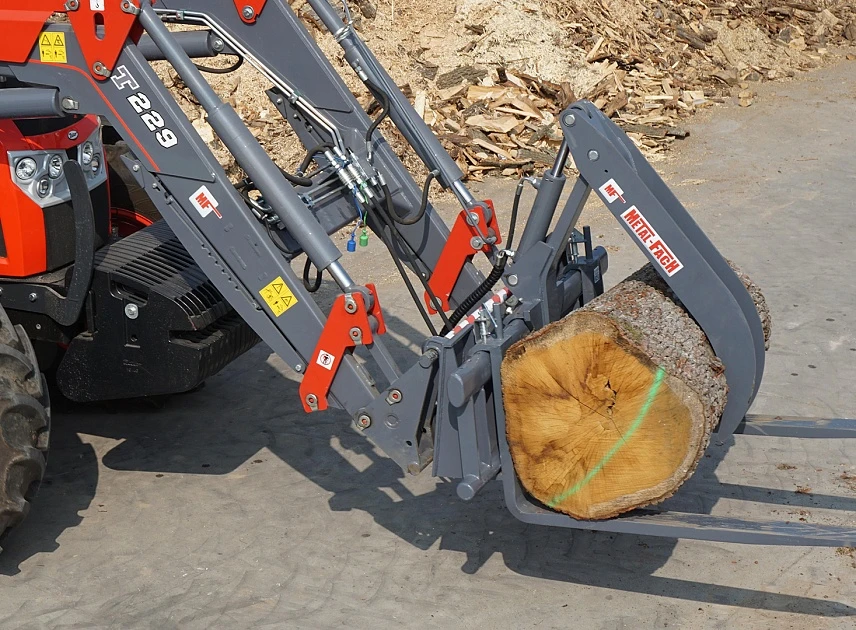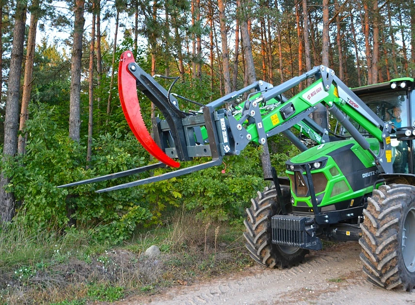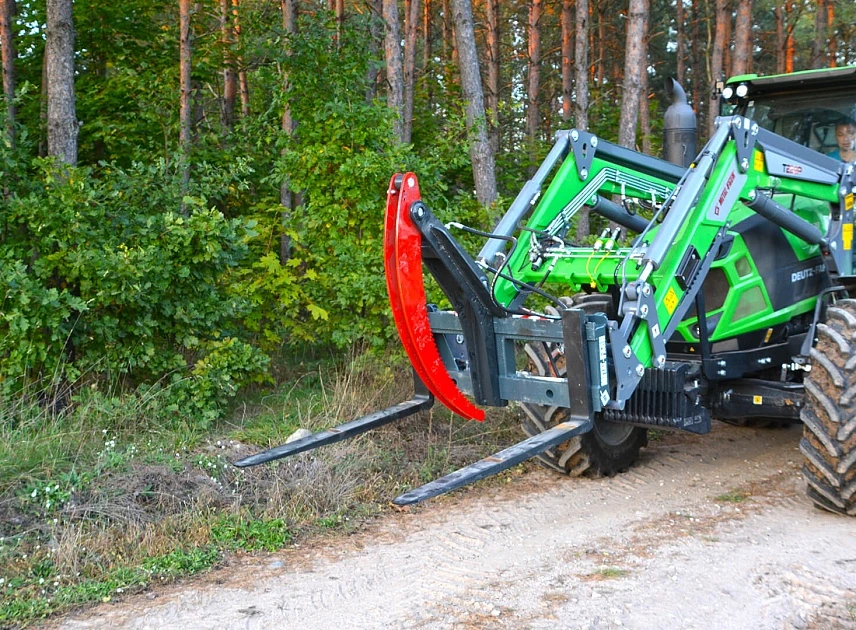 Захват для бревен Metal-Fach — это надежное оборудование, предназначенное для безопасной и эффективной погрузки и перемещения бревен. В комплект входят вил для поддонов, что обеспечивает удобство при работе с различными типами грузов, и захват для брёвен. Система крепления помогает установить или снять захват за 2 минуты, при этом вилы для поддонов сохраняют свой прямой функционал. Захват имеет увеличенный угол поворота верхней лапы. Максимальный диаметр бревна 900мм. Грузоподъемность устройства составляет 2000 кг. Для установки требуется наличие третьей линии гидравлики на фронтальном погрузчике. Такой захват идеально подходит для лесозаготовительных предприятий, складов и лесоперерабатывающих цехов, обеспечивая быстрый и безопасный процесс погрузки и транспортировки древесины. |