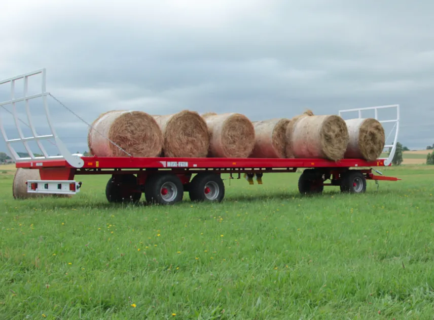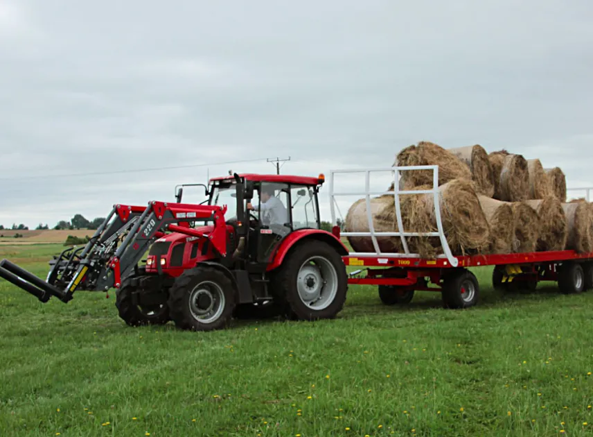 Подходит для любой модели трактора. Обеспечивает безопасную перевозку большого количества рулонов сена или соломы. Позволяет провести заготовку кормов в сжатые сроки. Модель платформенного прицепа для трактора пользуется популярностью среди небольших фермерских хозяйств и крупных агрохолдингов.