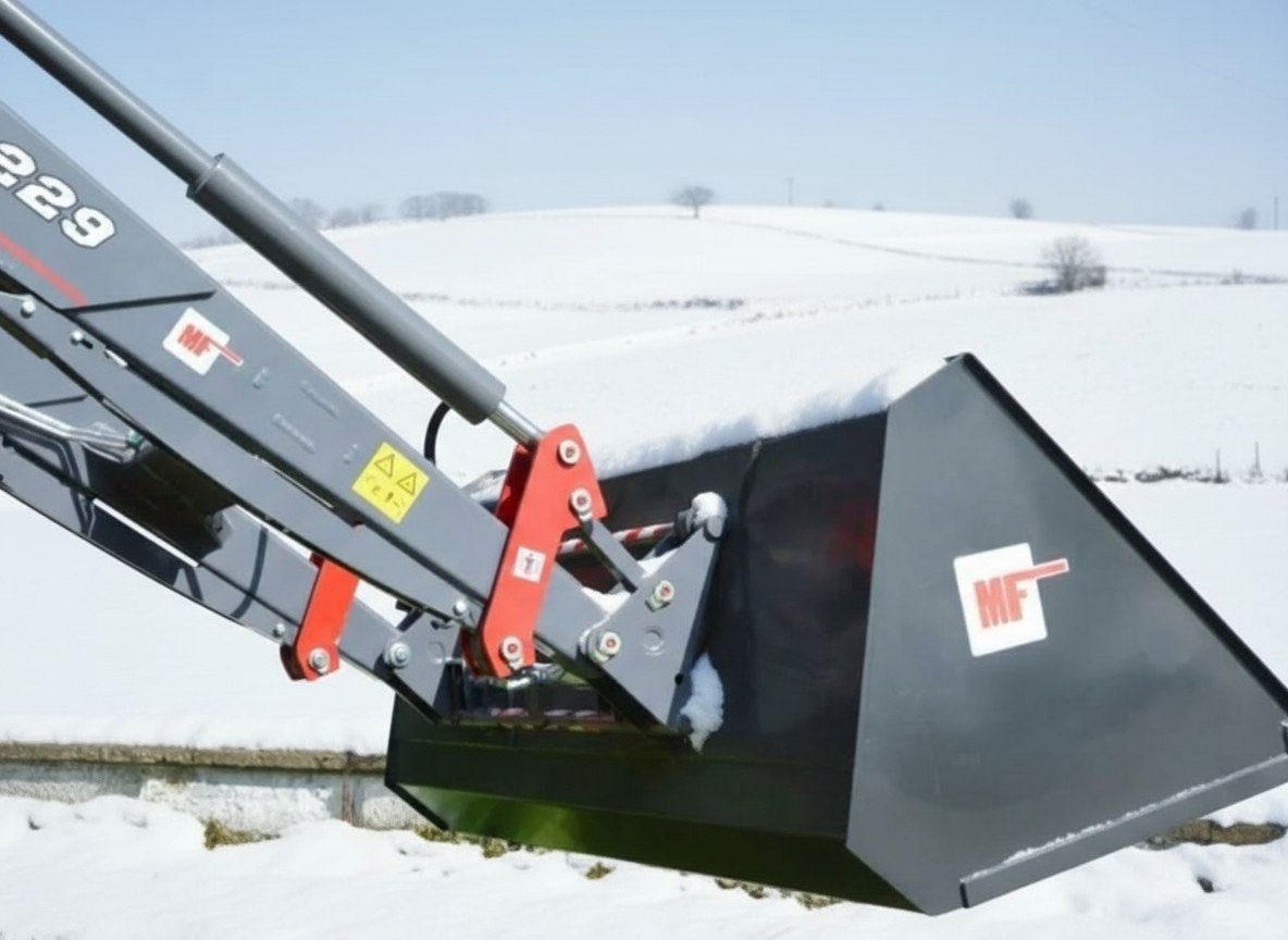 3. Снегоуборочные работы. Зимой ковш превращается в незаменимый инструмент для расчистки территории фермы и подъездных путей.